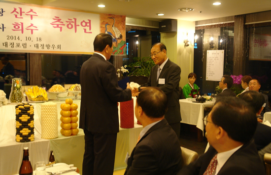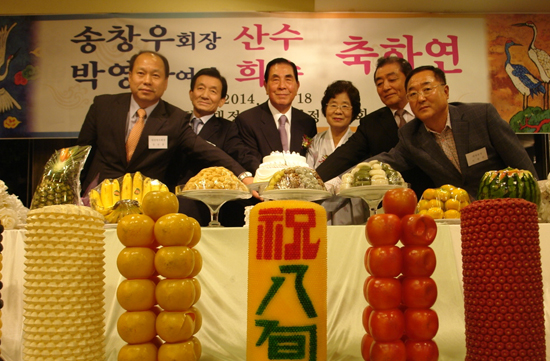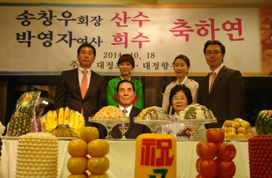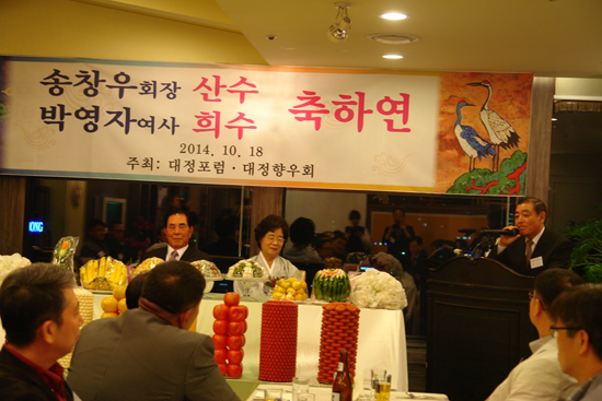 대정포럼(회장 강영수)과 대정읍향우회(회장 강공흡)는 10월18일 오후 7시 서울 명동 로얄호텔 21층 연회장에서 송창우 고문의 팔순을 축하하는 ‘산수연’을 개최했다. 아울러 송창우 고문의 부인 박영자 여사의 77세 생일을 축하하는 ‘희수연’도 함께 열렸다.
