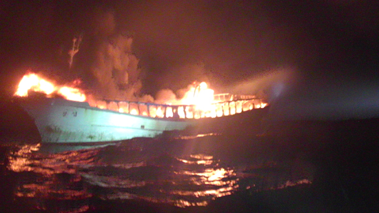 성산선적 103문성호(29톤)가 30일 오전 5시 13분께 독도 북동방 11㎞ 부근 해상에서 화재가 발생해 2명이 사망하고 4명이 실종됐다. 나머지 4명은 구조됐다.