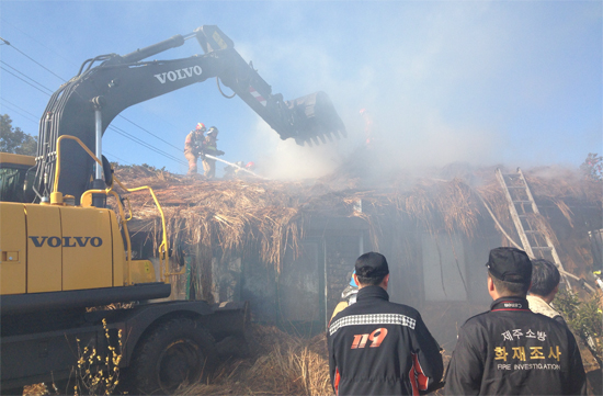 불이 나자 34명의 소방· 경찰· 한전 인력이 동원돼 주변에 불이 번지는 것을 저지했고,굴삭기를 이용해 초가지붕을 해체한 뒤 물을 뿌렸다.
