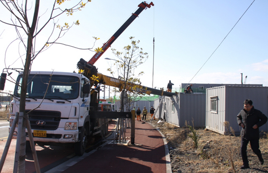 8일 오전 11시59분께 서귀포시 택지개발사업 지구 내 모 아파트 건설현장에서 10톤 짜리 크레인 장비가 넘어졌다.
