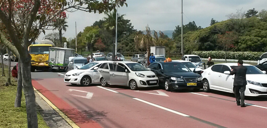 21일 오후 1시 경 서귀포시 도순동 대천동주민센터 앞에서 차량 10대가 잇따라 추돌하는 사고가 발생했다.