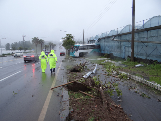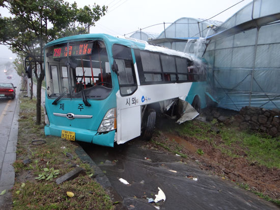 11일 오후 3시57분경 승객3명을 태운 버스가 대륜동 스모르 사거리 200~300m 동쪽 지점에서 담벼락을 들이받는 사고가 발생했다. 버스는 남조로행 버스로 제주시에서 출발해 서귀포 버스 터미널로 운행중이었으며, 빗길에 미끄러진 것으로 추정되고 있다.