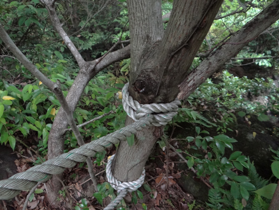 안쪽으로 더 들어간 소롱콧길 코스 중 4㎞ 정도 구간에도 같은 방법으로 나무들이 로프로 엮여 있다.