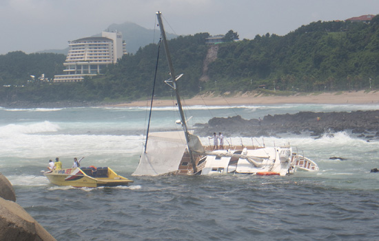 15일 오후12시 16분경 중문동 퍼시픽랜드 요트장에서 정박하려던 요트가 좌초되는 사고가 발생했다.