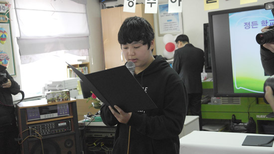 김종신 마라리장은 축사에서 “6년동안 친구 없이, 같이 할 수 있는 친구가 없어 힘들었을 것”이라 위로하며 “앞으로 공부 열심히 하고, 친구도 만이 사귀어라”고 격려했다.