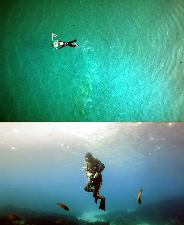 예전에는 해녀 분들을 그저 풍경으로 바라봤었어요. 그리고 저는 해녀를 잘 안다고 생각했었습니다. 늘 봐왔으니까요. 그런데 다시 들여다보면서 저는 제주해녀에 대해 아무것도 몰랐었구나, 라는 걸 알게 되었답니다. 세상을 산다는 것은 숨을 쉰다는 것이잖아요. 그런데 해녀, 그분들은 숨을 멈춰야 살 수 있구나, 라는 사실을 새삼 깨닫게 된 것이죠. 그러면서, 해녀분들이 무덤이 될 수도 있는 바다를 왜 저토록 그리워하고 어째서 저렇게 사랑하는 것인지 다시금 깊이 생각하고 느끼게 됐던 겁니다. 엄청난 깨달음이었다고나 할까요? 그것을 알기까지 시간이 많이 걸린 셈이죠. 2008년 6월의 일이었는데요. 사실, 제가 직업병처럼 6㎜ 동영상 카메라를 들고 다녔었어요. 그동안 쉬임없이 해녀 분들을 촬영한 영상들을 갖고 있기도 했고요. 이제와 돌이켜보면, 그게 '제주해녀'라는 대상에, '물숨'에, 저를 굉장히 붙잡히게 한 요인이 아니었나, 하는 생각이 듭니다. 그때부터 당장, 첫 촬영을 시작했으니까요.