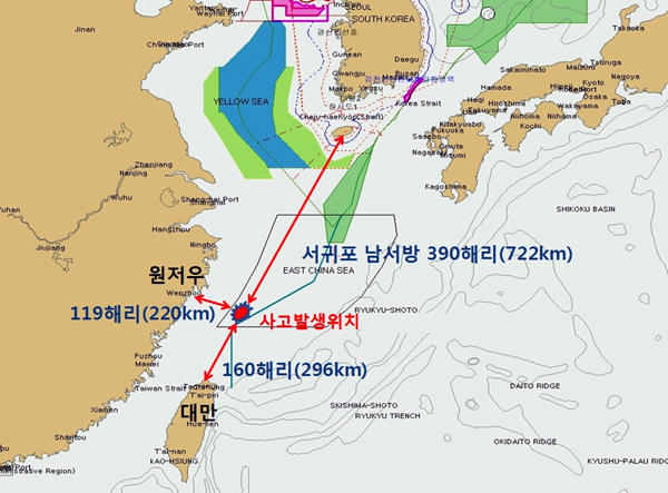 서귀포해경은 사고 신고를 접수받고, 3000톤급 경비함정이 전속력으로 18시간 이상을 항해하며 지난 27일 오후 2시 10분경, 사고현장에 도착하자마자 5m 정도의 높은 파도와 풍속 최고 20m/s 바람에 휩쓸리면서 선내 수색을 시도했었다.
