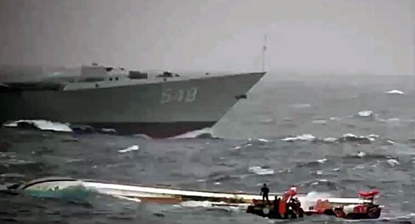 오전 11시20분경 세 번째 팀이 입수를 시도했으나 전복 선박이 급속하게 침수가 진행되면서 옆으로 누워있던 선체가 수직으로 변했고, 11시55분경 완전히 침몰했다. 침몰 위치는 중국 원저우 남동쪽 240km 해점이고, 침몰 해점의 수심은 약 106m이다.