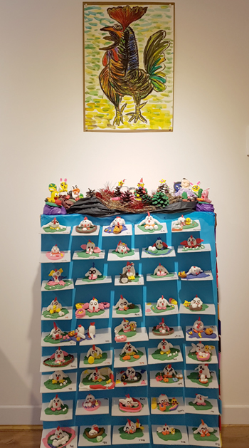 1월 1일부터 15일까지 진행되는 '초록빛 미술공작소 아이들의 상상 전시회'는 아이들의 순수한 마음을 그림을 통해 만날 수 있는 자리이다. 이번 전시는 미리 주제를 정하고 임하는 작업들이라기 보다는 아이들이 일상적으로 만든 작품들과 특별히 정유년을 맞아 닭을 표현한 아이들의 공동작품들이 포함되어 있다.