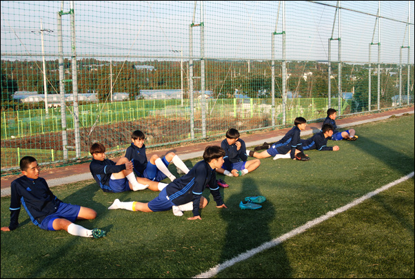 제주제일중 축구부 주장을 맡고 있는 김민규 선수를 만났다. 제주도 중학교 축구부 가운데 막내 팀의 맏형을 맡고 있는 선수다. 주장이라서 그런지, 무거운 책임감이 읽히는 얼굴이다.