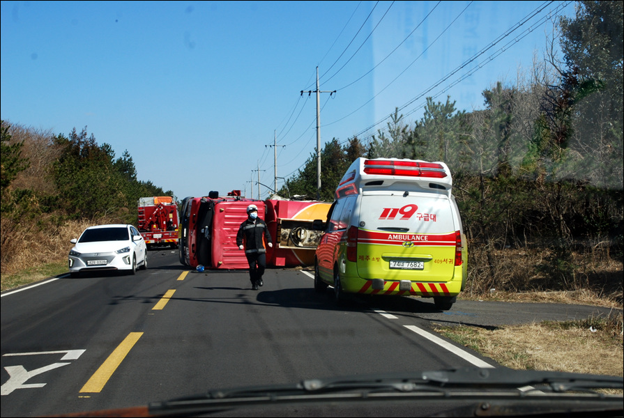 지난 6일 2시경, 서성로 백통신원기린산장과 국가태풍센터 사이에서 유조차와 1톤 트럭이 추돌하는 사고가 발생했다. 충격으로 유조차는 전복됐고, 1톤 트럭은 전면부가 크게 함몰됐다. 사고 여파로 일대 교통이 한때 혼잡을 겪었다.