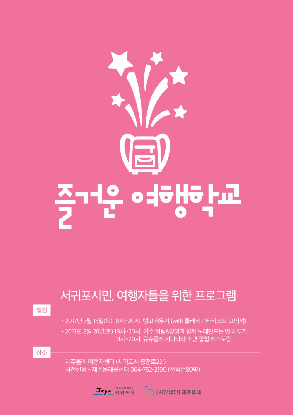 여름방학과 휴가철을 맞아 제주를 찾는 여행자들이 신나게 참여할 수 있는 ‘즐거운 여행학교’가 서귀포에 열린다.
