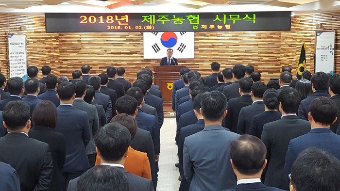 고병기 본부장은 인사말을 통해 “작년 한해 농업현장에서 농업인 실익증진을 위해 맡은바 업무를 묵묵히 수행해 준 직원들의 노고에 감사한다”면서, “올해에는 최우선 과제인 농가소득 5천만원 전국 최초 달성, 행정과의 농정협치 강화, 농산물 부가가치 제고, 4차산업 혁명 농업부문 대응방안 마련 등 제주의 가치를 높이고 농업의 가치를 높이는 일에 다함께 노력해 주기를 바란다”고 당부했다.