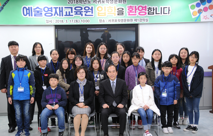 2018학년도 서귀포학생문화원예술영재교육원(원장 정은수) 입학식 이 3월 17일, 입학생, 학부모, 영재교육 담당교사, 문화원 관계자 등 80여 명이 참석한 가운데 서귀포학생문화원에서 진행됐다.
