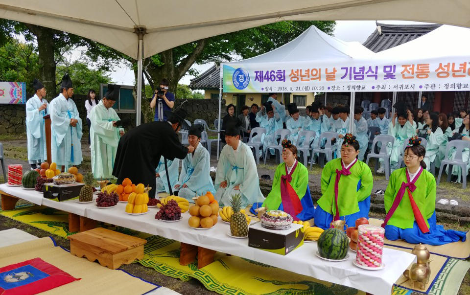 서귀포시 지역에서는 정의향교와 대정향교가 해마다 번갈아가며 성년의 날 기념식을 개최하고 있다. 올해는 정의향교에서 기념식이 마련됐다. 올해로 성년을 맞은 50명과 지역주민 등의 참석했다.