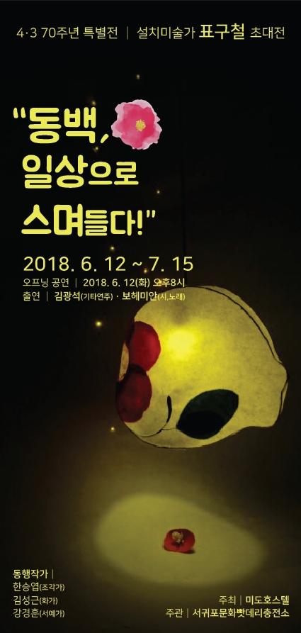 4.3 70주년 특별전시가 문화예술공간에서 일상의 공간으로 이어진다. 지난 4월부터 5월까지 서귀포문화빳데리충전소에서 열렸던 설치미술가 표구철 작가의 전시가 '동백, 일상으로 스며들다.'라는 타이틀로 미도호스텔에서 12일부터 내달 15일까지 연장 전시된다.