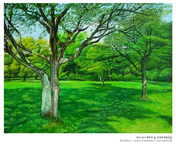 해안가를 넘어서서 계속 걷다 보니 어느새 곶자왈에 있는 지금을 발견하게 되었다고 한다. 더 훼손되지 않기를 바라는 제주의 숲에서 경건할 정도로 높은 나무 끝을 보기 위해 목을 젖히거나, 묵묵히 먼 곳을 바라보며 숲 전체를 음미하고 있으니 평화로움이 전해진다.