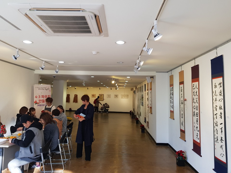 『藝 뜨락을 거닐다』라는 슬로건으로 10시부터 시작된 작품발표회 행사는 수채캘리그라피, 한자·한글서예, 사군자, 자수, 재봉틀 프로그램의 총 56점의 작품을 전시했다. 전시 옆 공간에서는 제주 4.3 70주년을 기념하기 위한 체험프로그램으로 4.3 파우치 만들기 프로그램을 운영했다.