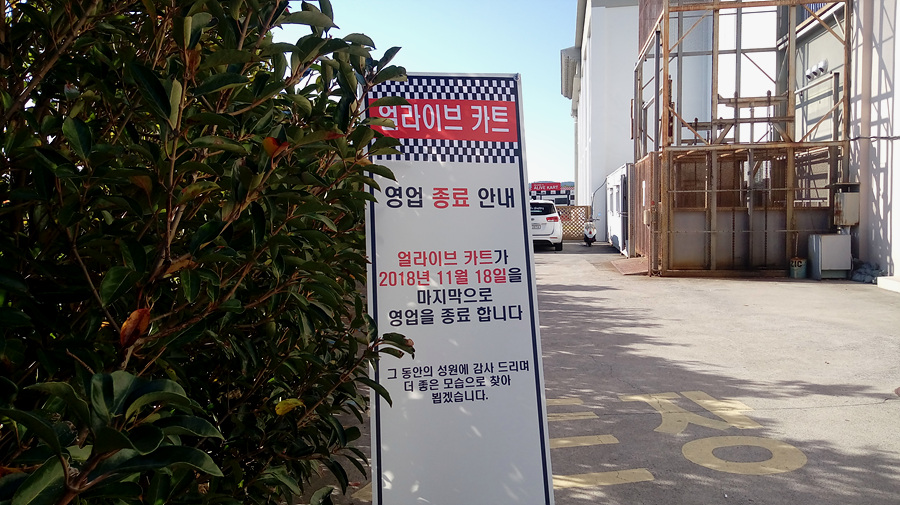 기자가 현장을 확인한 결과, 업체는 카트장 입구에 ‘18일을 마지막으로 영업을 종료합니다. 그동안 성원에 감사드리며 더 좋은 모습으로 찾아뵙겠습니다’라는 내용으로 영업종료 안내문을 게시했다.