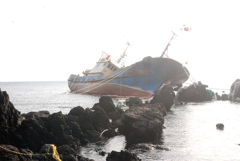 서귀포해경이 불법조업 중이던 중국 어선을 나포하던 중 강풍과 포도로 중국어선이 좌초돼 구조작업에 난항을 겪고 있다. 유류오염 등에 대배히 방제대원들을 급파해 기름 이송 작업을 시도학 있으나 풍랑으로 작업에 어려움을 겪고 있다.