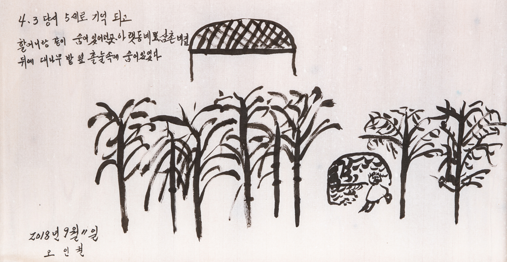 제주4‧3평화재단(이사장 양조훈)과 제주4‧3 70주년기념사업위원회(상임공동대표 강정효)는 16일부터 4월 14일까지 제주4‧3평화기념관 기획전시실에서 4‧3생존희생자 그림 기록전 <어쩌면 잊혀졌을 풍경>전을 마련했다.
