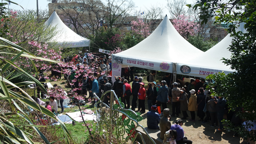 '복사꽃이 돗국물에 빠진 날'을 테마로 서귀포의 봄을 즐기는 축제가 이중섭 공원 일대에서 열렸다. 이중섭 공원 일대에는 벚꽃, 매화, 유채꽃들이 활짝 피어 봄 소식을 전했다.