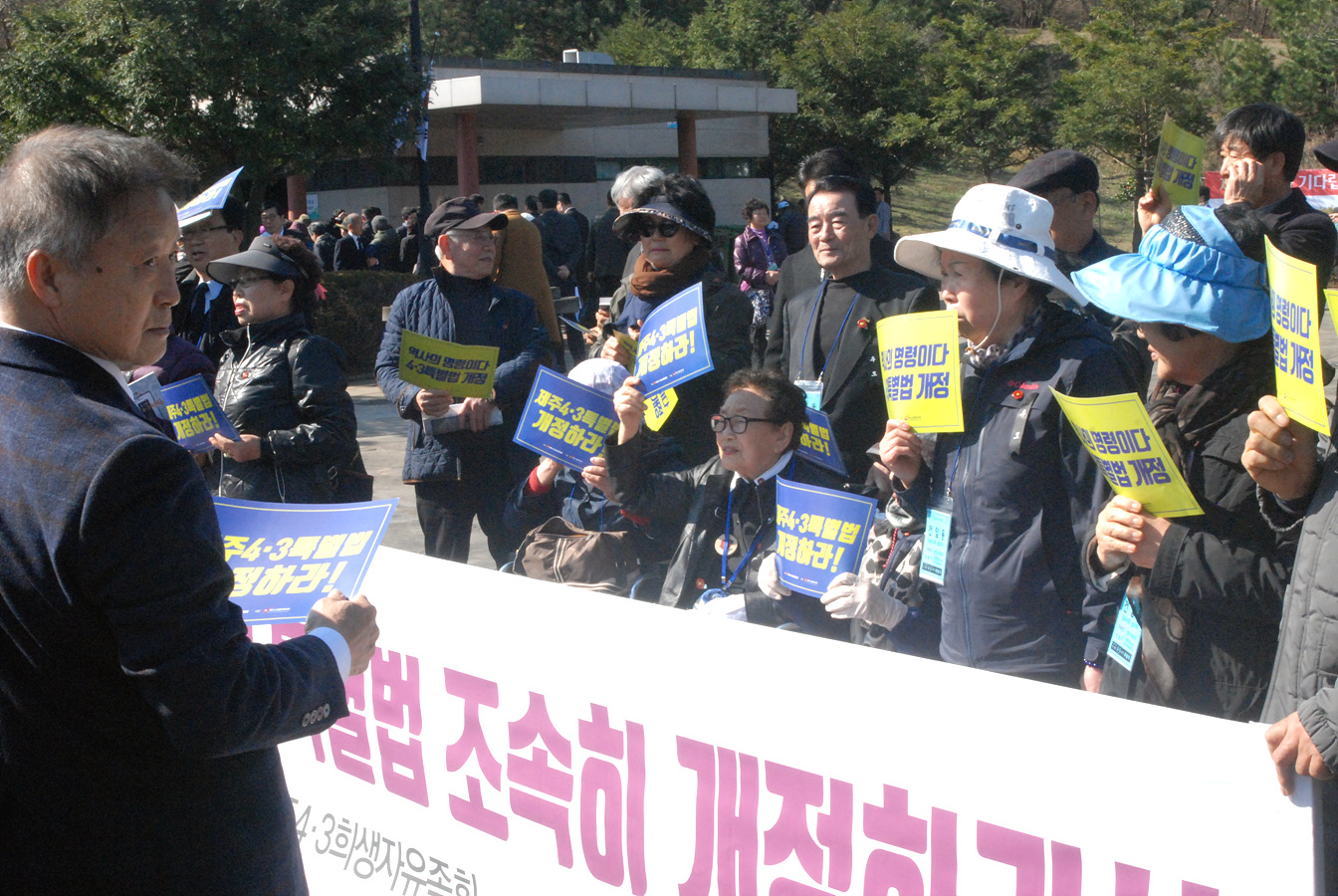 유족들과 도민사회의 기대는 커졌다. 문재인 대통령의 약속과 맥이 통하는 특별법 개정안이 국회 문턱을 통과하면 억울한 희생자들의 원한이 조금이나마 해소될 것이라는 기대는 당연한 것이다. 하지만 특별법 개정안이 제출된 지 1년이 넘었지만 여전히 국회에서 표류하고 있다.