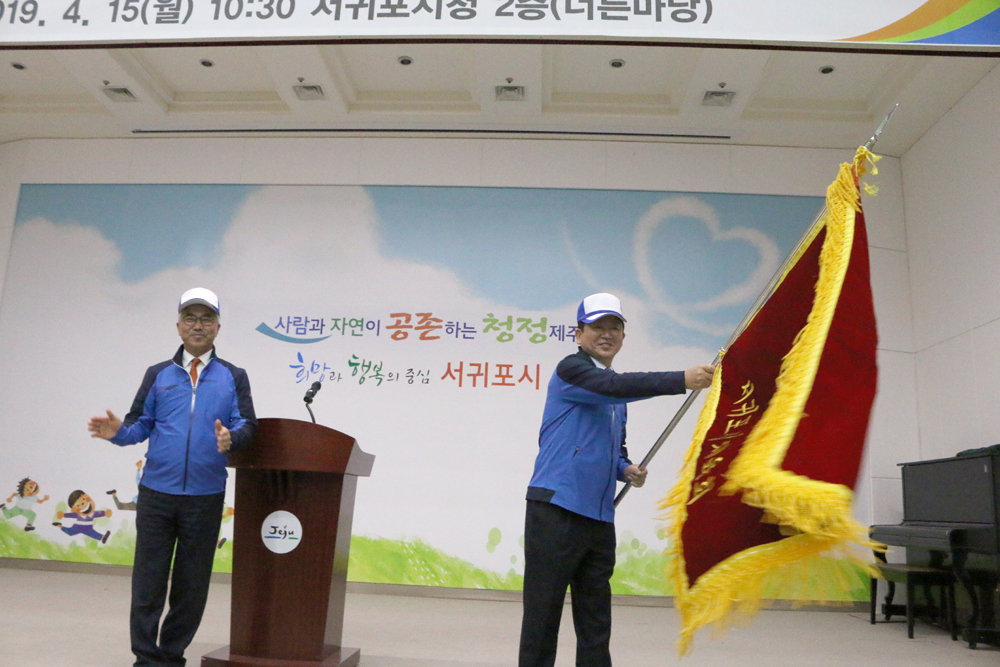 서귀포시 선수단은 15일 시청 제1청사 너른마당에서 선수단 200여 명이 참석한 가운데 결단식을 개최했다.