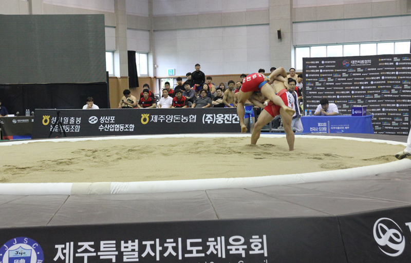 제33회 전국시·도대항장사씨름대회가 19일 고등부 개인전을 시작으로 25일까지 성산읍국민체육센터에서 치러진다. 이 대회는 대한씨름협회가 주최하고 제주특별자치도씨름협회가 주관했다.