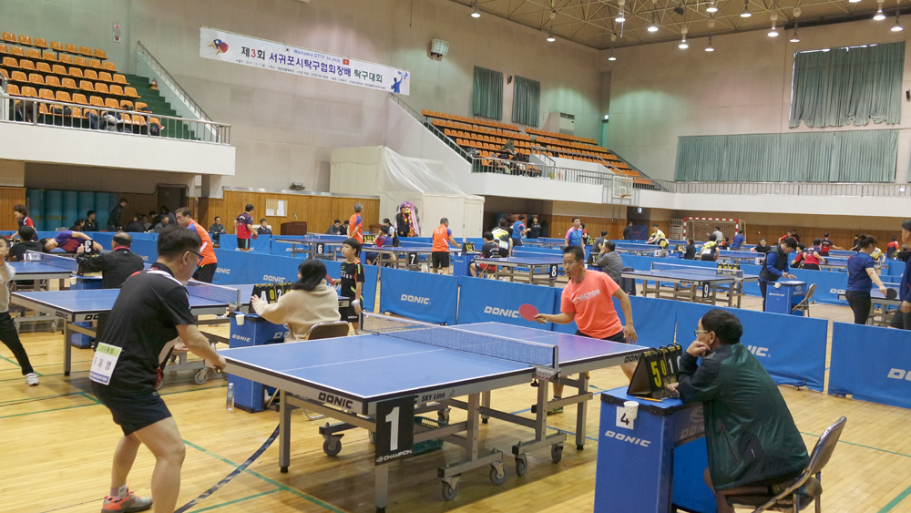 제3회 서귀포시협회장배 탁구대회가 2일 천지학생체육관(구 동홍생활체육관)에서 열려 탁구 동호인들이 기량을 겨루면서 친선을 도모했다. 이날 베트남 다낭탁구협회와 친선교류를 위한 MOU도 체결됐다.