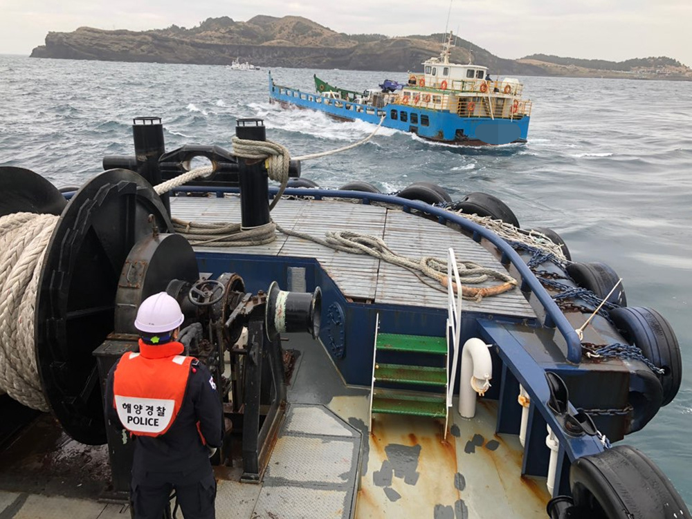 해경 관계자는 서귀포신문과의 통화에서 “해수가 갑판 위로 침투하는 것을 방지하기 위해 배위 뒷쪽 방향으로 로프를 매고 예인했다”라고 말했다.