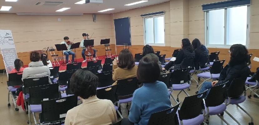 송악도서관(관장 양문식)은 18일 오후 1시 30분부터 도서관 다목적실에서 ‘앙상블 아미 연주회’를 개최했다. 연주회는 송악도서관이 지역사회에 기여하고 문화활동으로 사랑과 나눔의 가치를 실현하기 위해 열렸다.