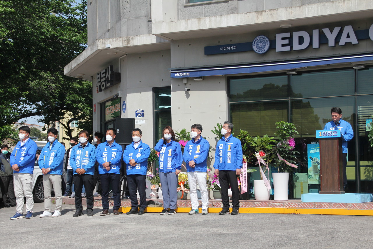 임정은 후보의 정책 기자회견이 있고 난 뒤, 선거사무실 개소식이 있었다. 개소식에는 위성곤 국회의원, 송재호 국회의원, 김용범 도의원, 조훈배 도의원, 김태석 도의원, 송영훈 도의원, 김대진 도의원 등과 김용관 서귀포축협 조합장, 이성준 서귀포시 통장 협의회장, 김명윤 예래동 노인회장, 김성범 중문농협 조합장, 강충현 중문신협 이사장, 임영찬 대포마을회장, 김상호 4.3 유족회 중문분회장 등이 참석했다.