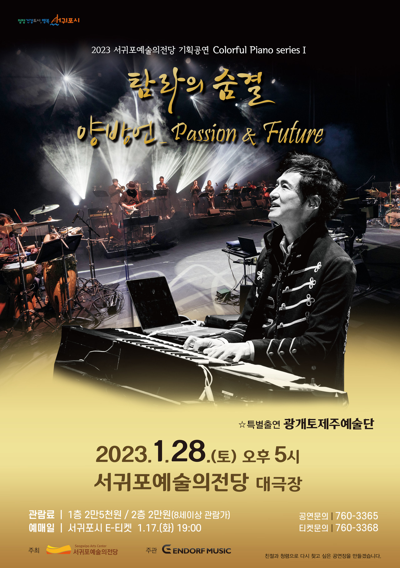 탐라의 숨결 피아니스트 양방언 PASSION & FUTURE 공연이 오는 1월 28일 오후 5시 서귀포예술의전당 대극장에서 개최된다.