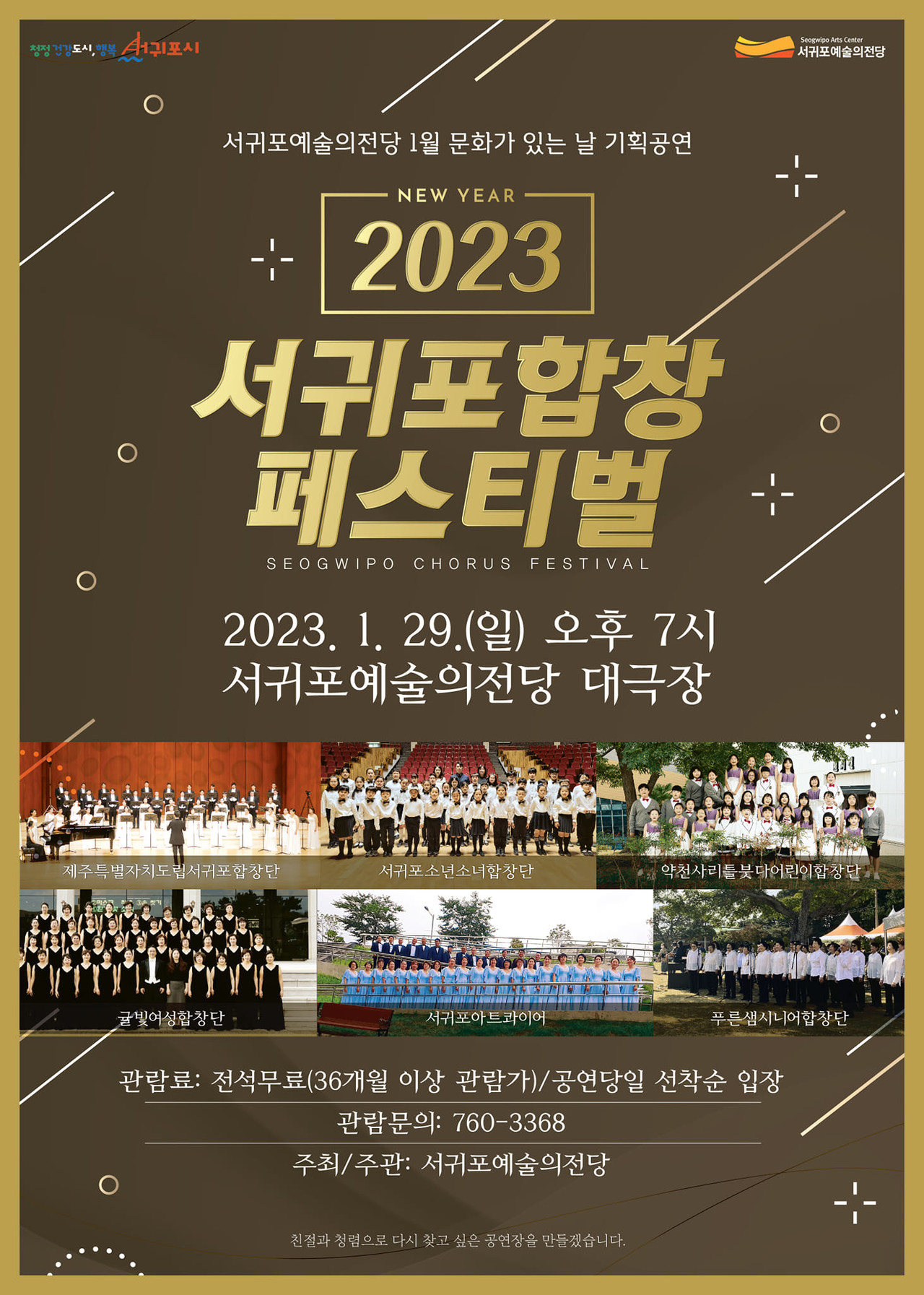 서귀포시는 2023 첫 번째 문화가 있는 날 기획공연 서귀포합창페스티벌을 오는 1월 29일 오후 7시 서귀포예술의전당 대극장에서 개최한다.
