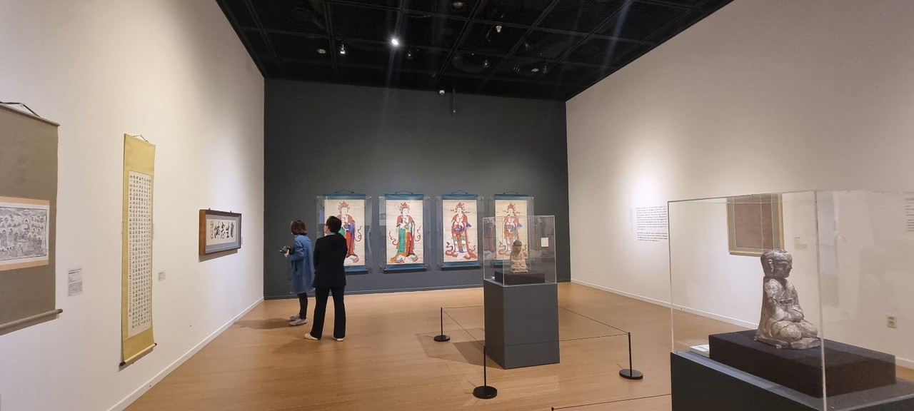 특히 불교 유물은 국내를 대표하는 삼보사찰인 통도사와 해인사에 소장됐던 것으로 함께 전시돼 눈길을 끌었다. 통도사의 경상남도 유형문화재로 지정된 ‘통도사건륭17년 아미타후불탱’을 비롯 불교의 수행과정을 소와 동자에 비유해 설명한 해인사의 ‘심우도 팔곡 병풍’과 1600년대에 간행된 ‘묘법연화경’ 등 귀중한 불교 유물을 한 자리에서 만날 수 있다.