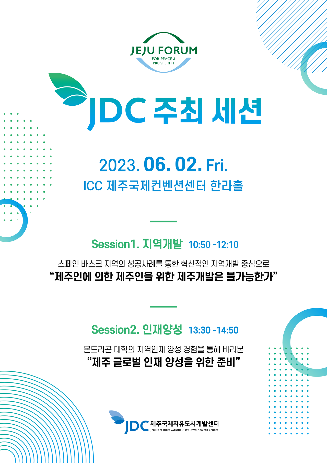 제주국제자유도시개발센터(이사장 양영철, 이하 JDC)는 오는 6월 2일 제 18회 제주포럼에서 JDC주최 지역개발 및 인재양성 세션과 기관 홍보부스를 운영할 계획이다.