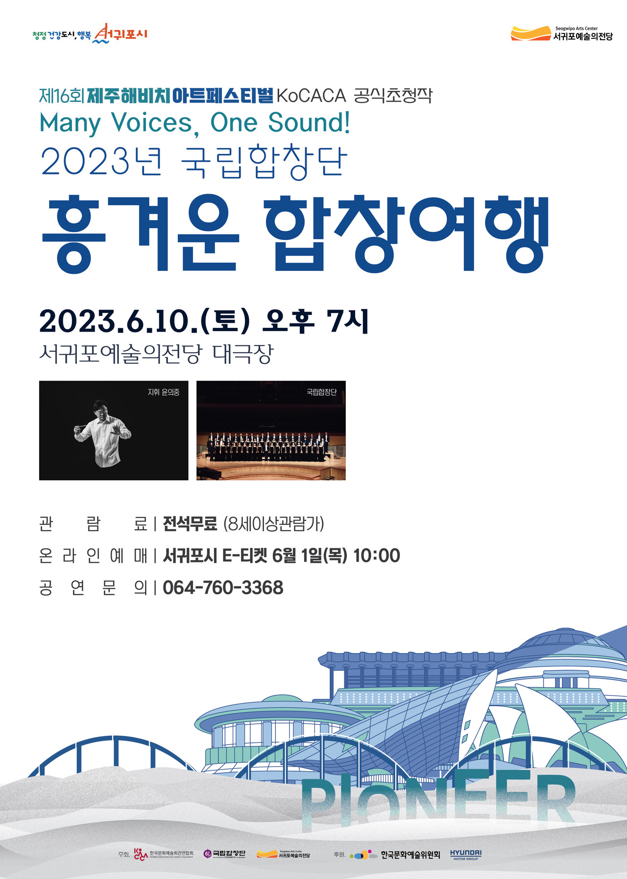 서귀포시는 제16회 제주해비치아트페스티벌 초청작으로 2023 국립합창단 ‘흥겨운 합창여행’ 공연을 6월 10일 오후 7시 서귀포예술의전당 대극장에서 개최한다.