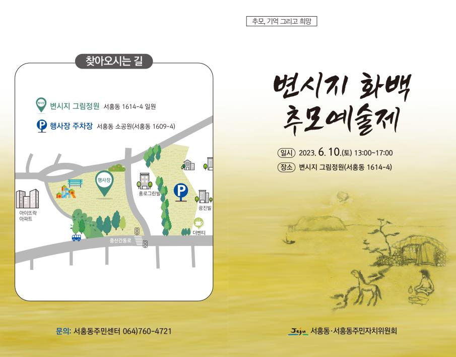 또한, 서홍동주민자치위원회(위원장 문정표)에서 주최하는 변시지 어린이 그림그리기 대회가 추모예술제와 함께 진행된다.