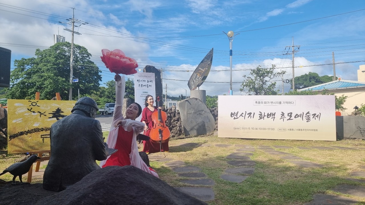 서귀포시 서홍동에 위치한 변시지 그림정원에서 10일 오후 1시부터 유족과 지역주민, 어린이 등 500여명이 참석한 가운데 제주를 대표하는 화가 변시지 화백의 서거 10주기를 기리는 추모예술제가 개최됐다.