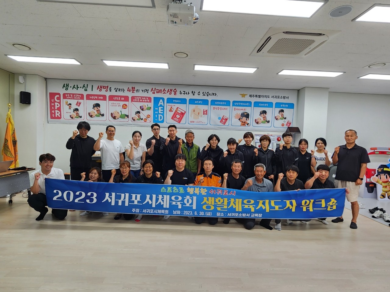 서귀포시체육회(회장 김태문)에서는 지난 달 30일 생활체육지도자 전문적인 능력 향상을 위하여 응급처치(심폐소생술), 스포츠 윤리적 가치와 인 권을 보장하는 환경 조성을 위하여 ‘2023 생활체육지도자 워크숍’ 을 개최했다.