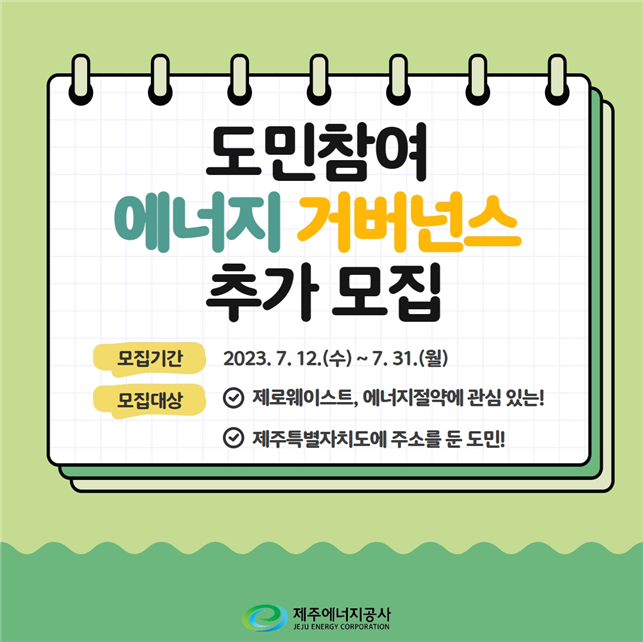 제주에너지공사(사장 김호민)는 제주특별자치도가 추진하고 있는 카본프리아일랜드 2030(Carbon Free Island Jeju by 2030; 이하 ‘CFI’) 실현을 위해 도민참여 에너지 거버넌스 참가자를 7월 31일까지 추가 모집한다고 밝혔다.