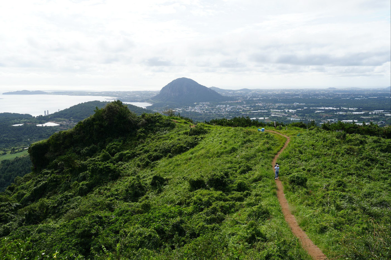 정상부 주변에는 시야를 가릴만한 큰 나무가 없어 탁 트인 경치가 눈을 즐겁게 한다. 산방산 너머로 지는 일몰을 볼 수 있는 명소이기도 하다.