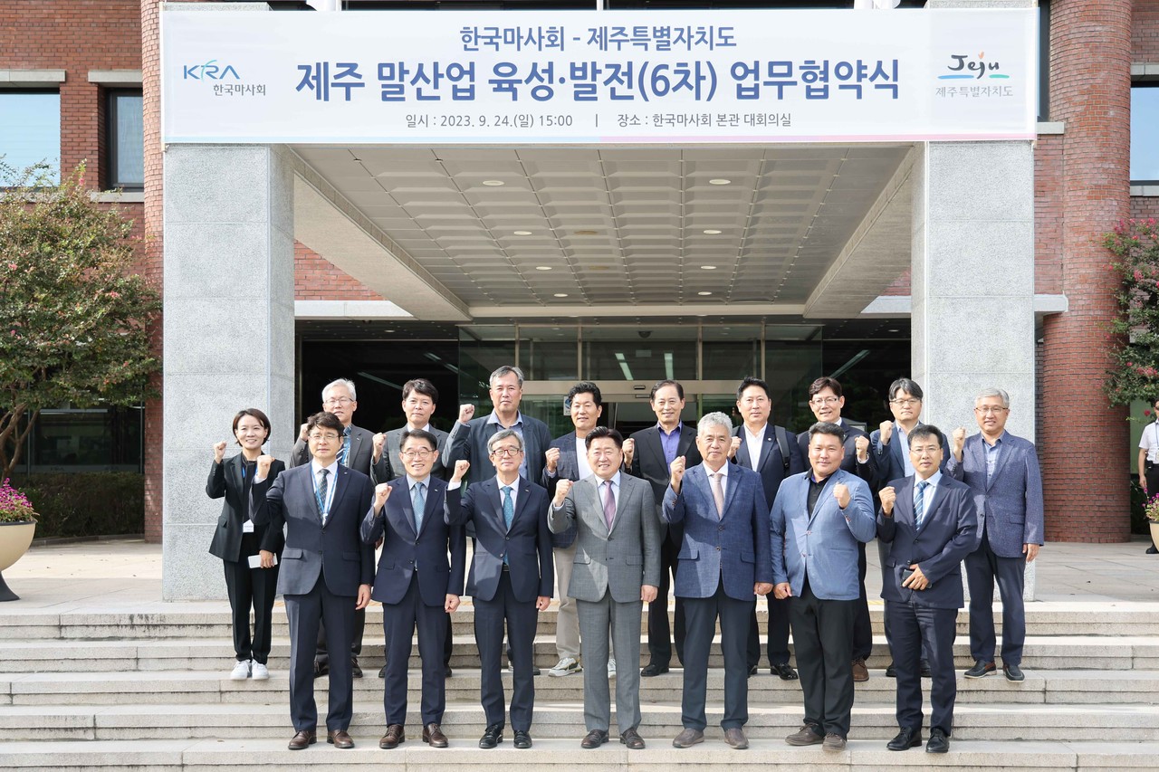 한국마사회(회장 정기환)와 제주특별자치도(도지사 오영훈)는 지난 24일 한국마사회 본관(과천 소재)에서 ‘제주 말산업 육성 및 발전을 위한 제6차 업무협약’을 체결했다. 이번 업무협약의 핵심은 레저세 감면액을 말산업 발전 및 경쟁력 강화를 위한 사업에 투자하는 것이다.