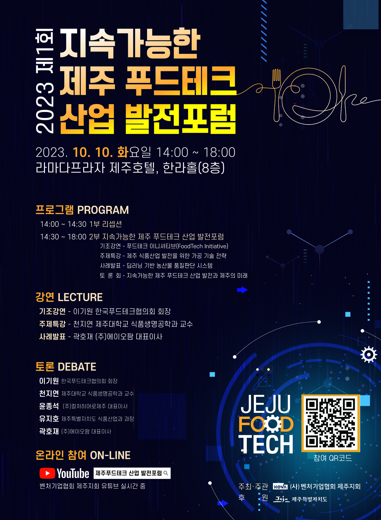 ‘2023 제1회 지속가능한 제주 푸드테크산업 발전 포럼’이 오는 10월 10일 오후 2시 라마다프라자 제주호텔에서 열린다.