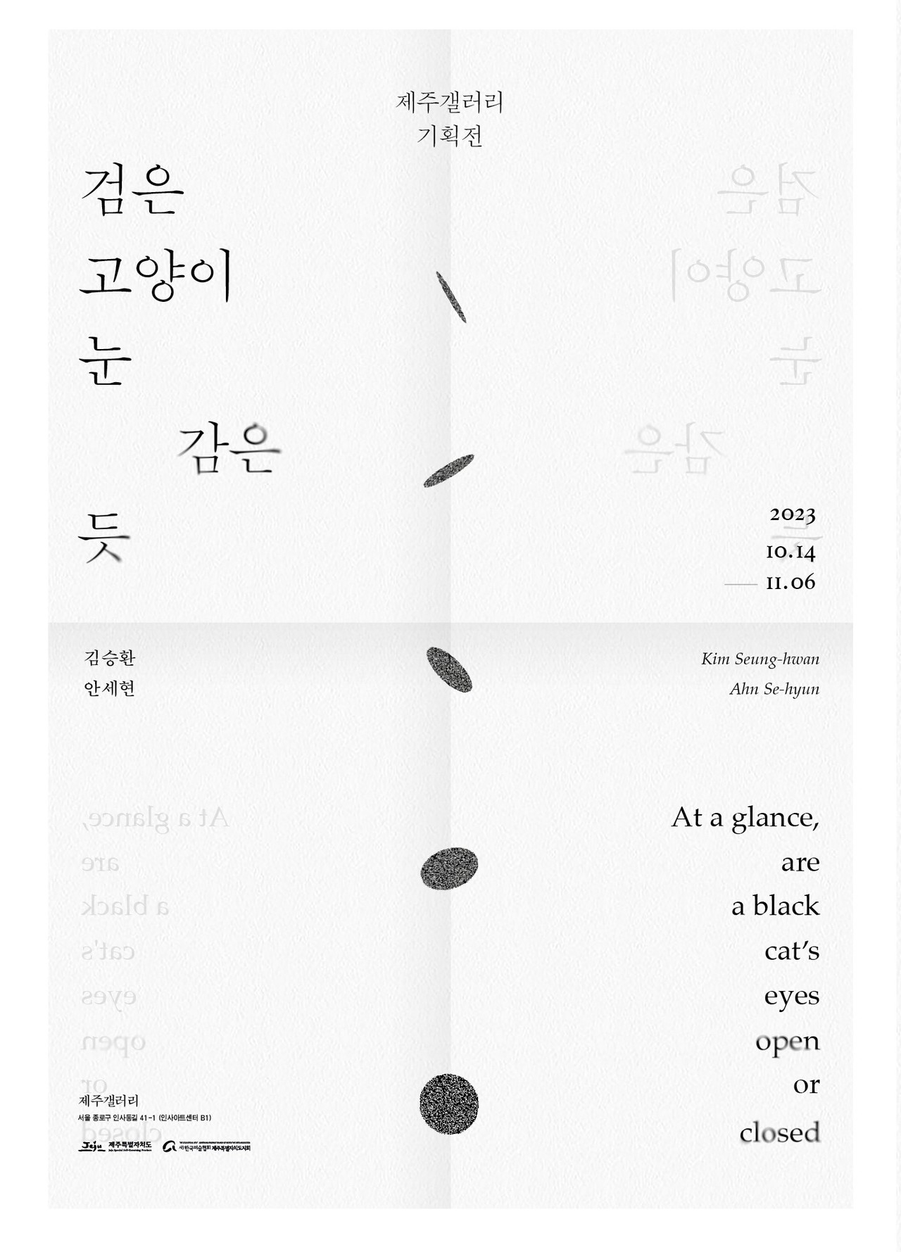 오는 14일, 제주 갤러리는 기획전시 '검은 고양이 눈 감은 듯'을 개최한다. 이번 전시는 제주에서 왕성하게 활동하는 김승환·안세현 작가의 작품을 선보인다.
