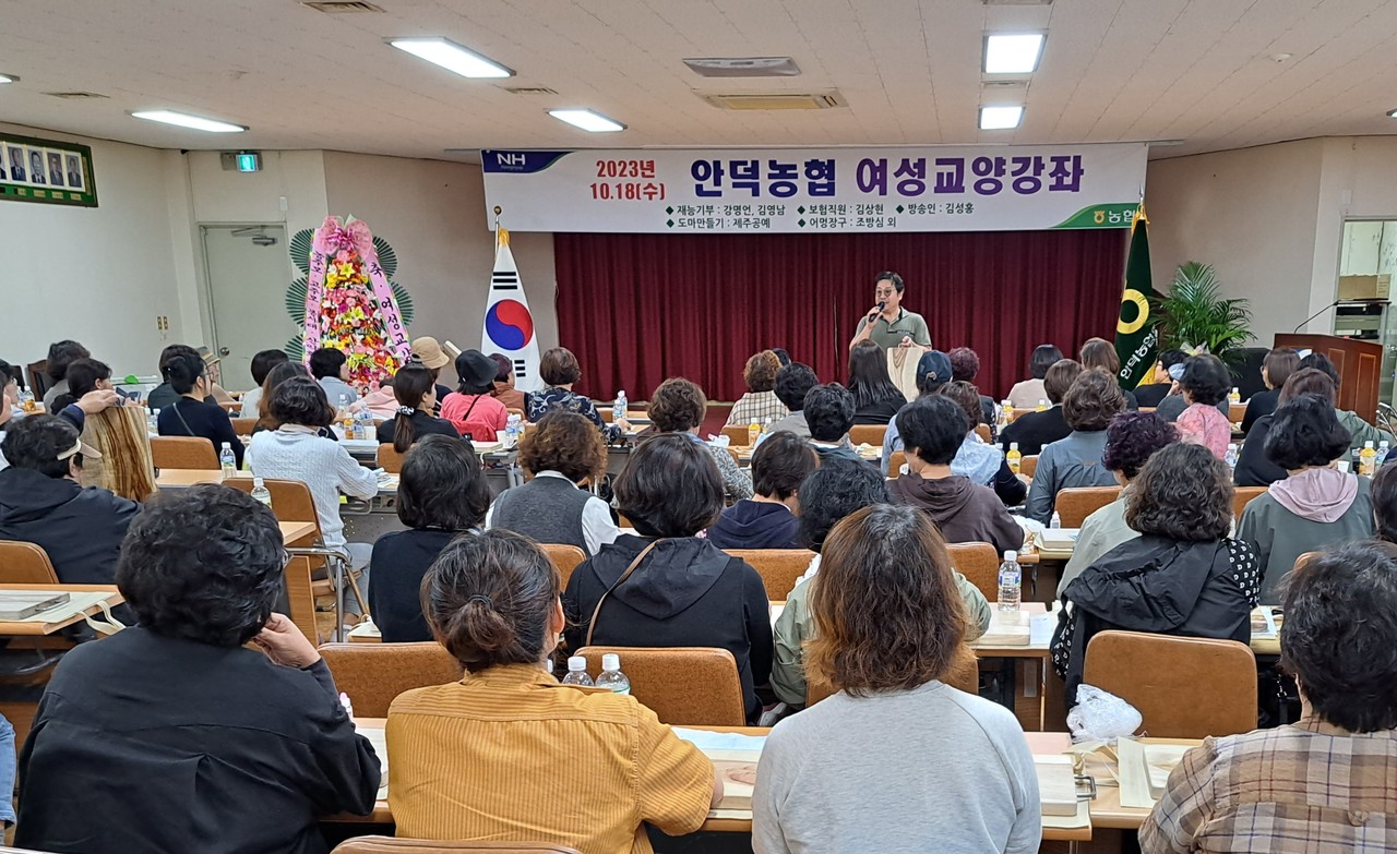 안덕농협(조합장 이한열)은 지난 18일 3층 회의실에서 여성조합원 100여명이 참석한 가운데 “2023년 여성교양강좌”를 진행해 성황리에 마무리했다.