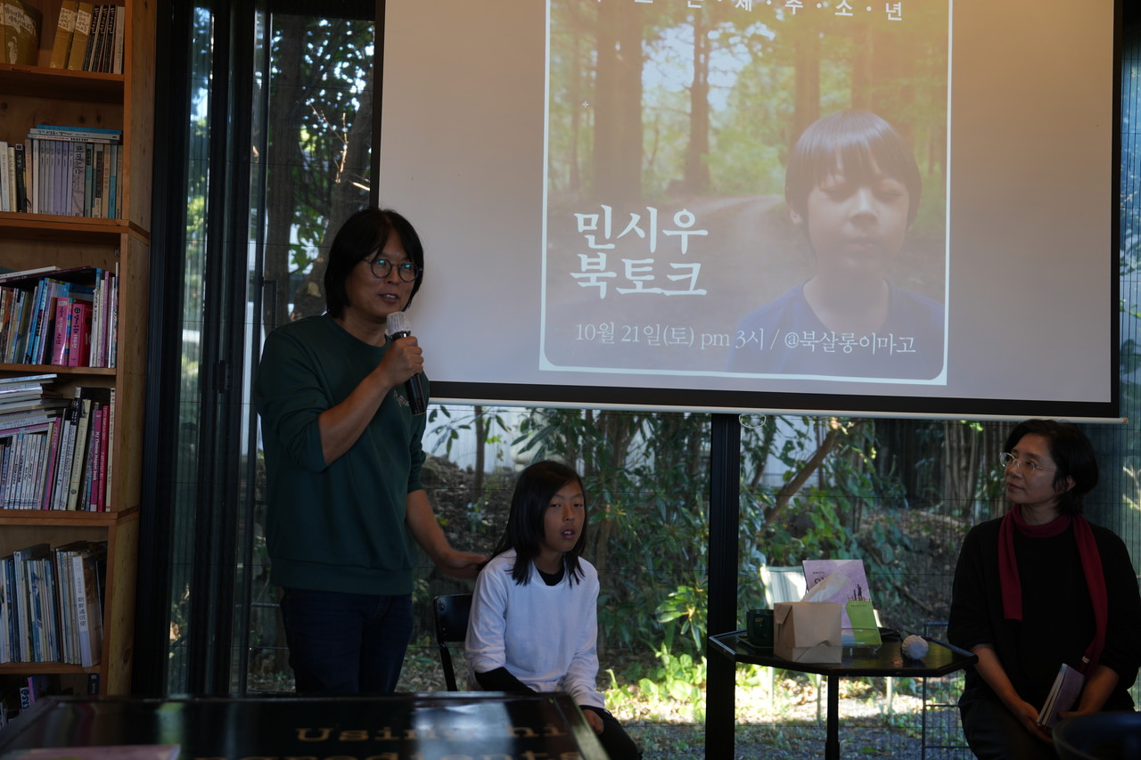 이날 북토크에 함께 온 민시우군의 아빠는 민병훈 영화감독이 제작했던 영화와 개봉을 앞둔 다큐멘터리 ‘약속’의 영상도 일부 상영됐다.