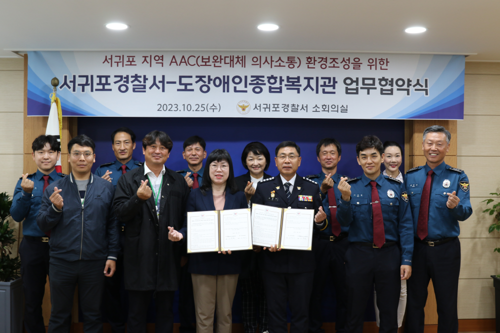 서귀포경찰서(서장 오충익)에서는 25일 제주특별자치도장애인종합복지관과 서귀포 지역 보완대체 의사소통(AAC)환경조성을 위한 업무협약을 체결했다.