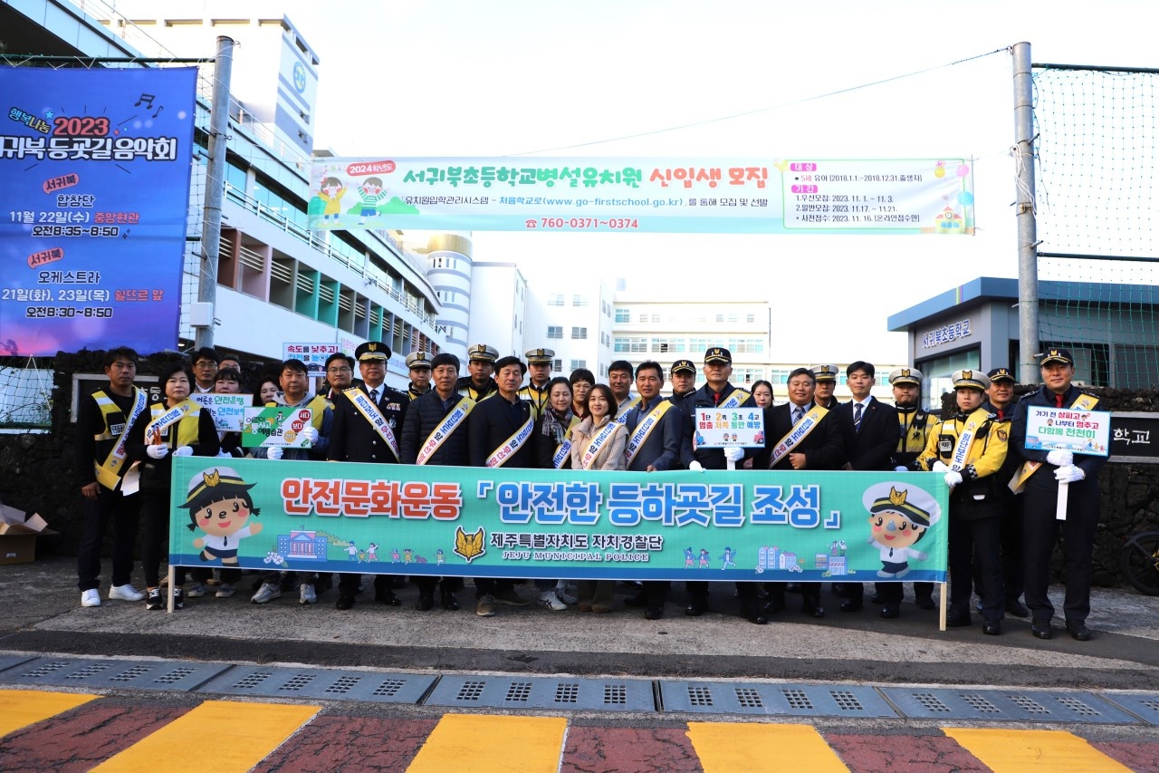 제주자치경찰단(단장 박기남)은 범도민 운동으로 추진중인 보호구역 안전문화운동 캠페인을 21일 서귀북초에서 진행했다.